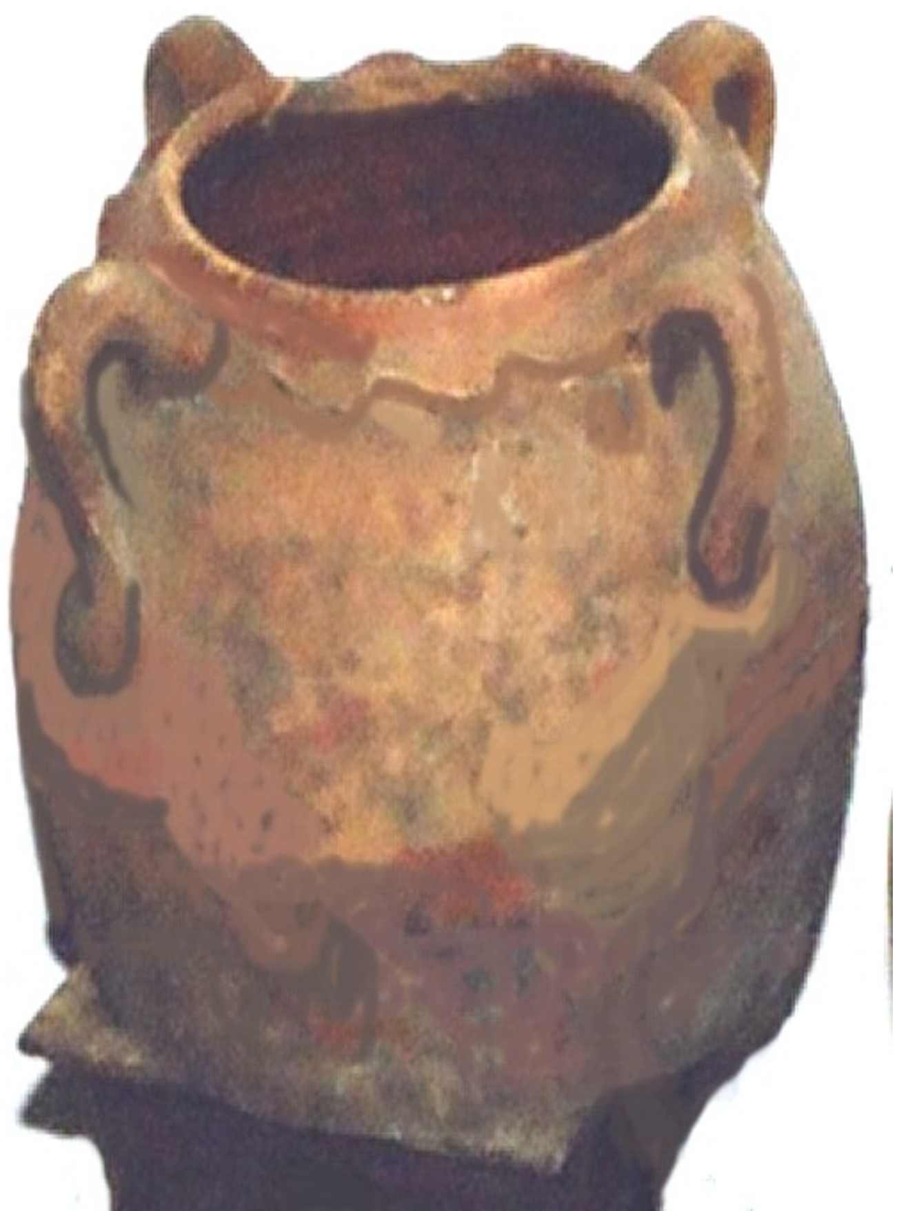 | Peui, a ven-u divis, ün a ün, e sistemà a curs, ün ëdzura a l’ àutr, ant la famusa “Duja”, ch’ a l’ è ün gross recipient ëd teracheuita adat a custa funsiun. | ||