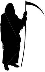 scheletrica mette la falce in spalla, si avvicina un iomo di mezza età, guarda la falce, cerca il prezzo, non lo trova,via se ne va. La morte non sa più, non ha più la forza di reagire. |